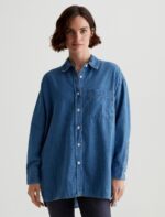 A foolproof addition to your lineup, the Brea Shirt takes inspiration from menswear (see the oversized fit and classic details). It’s designed in pale blue Teak Denim from Japan and features a pointed collar, long sleeves, and a single patch pocket at the chest. The relaxed, effortless style works equally well with denim or trousers.